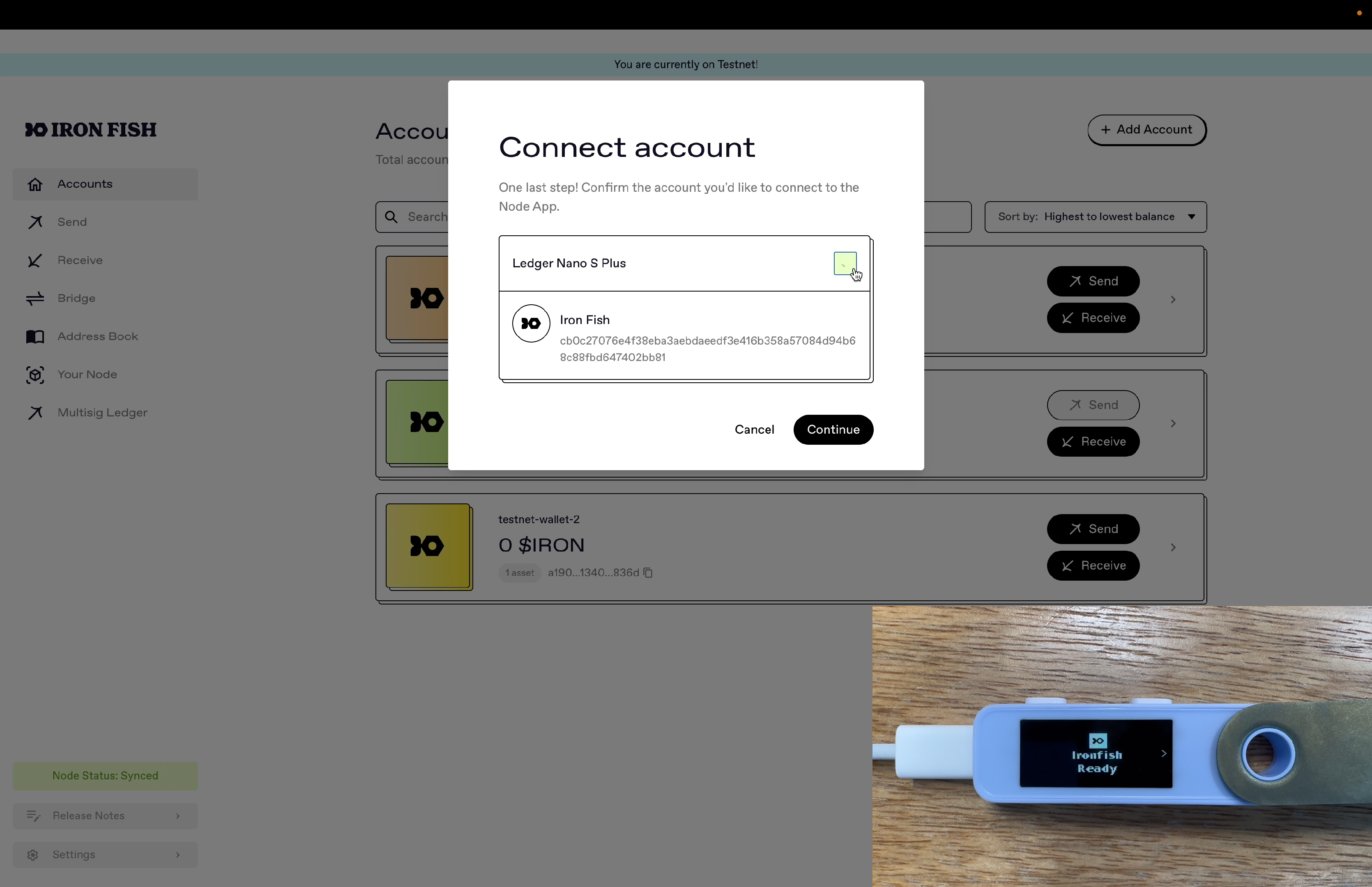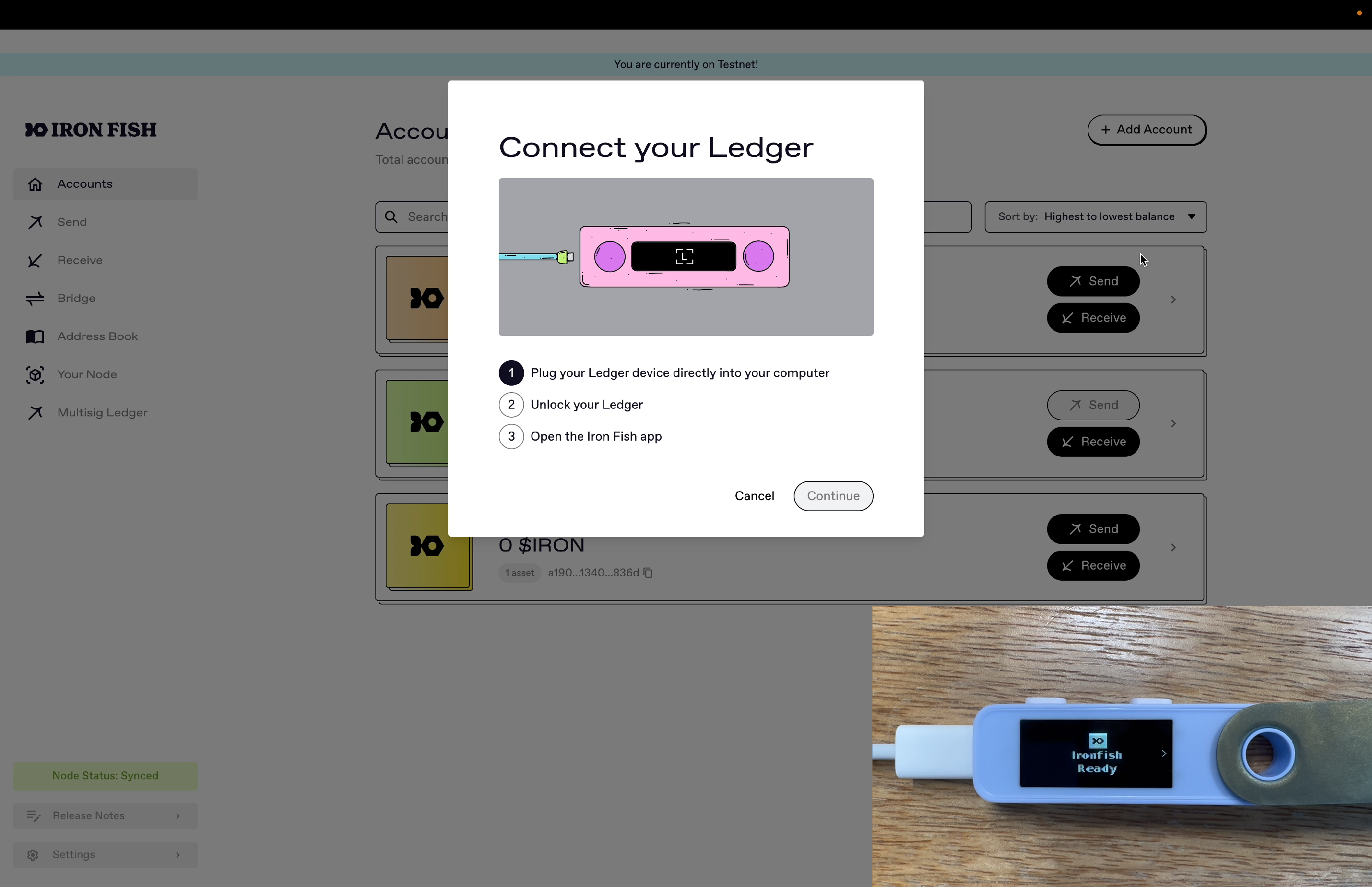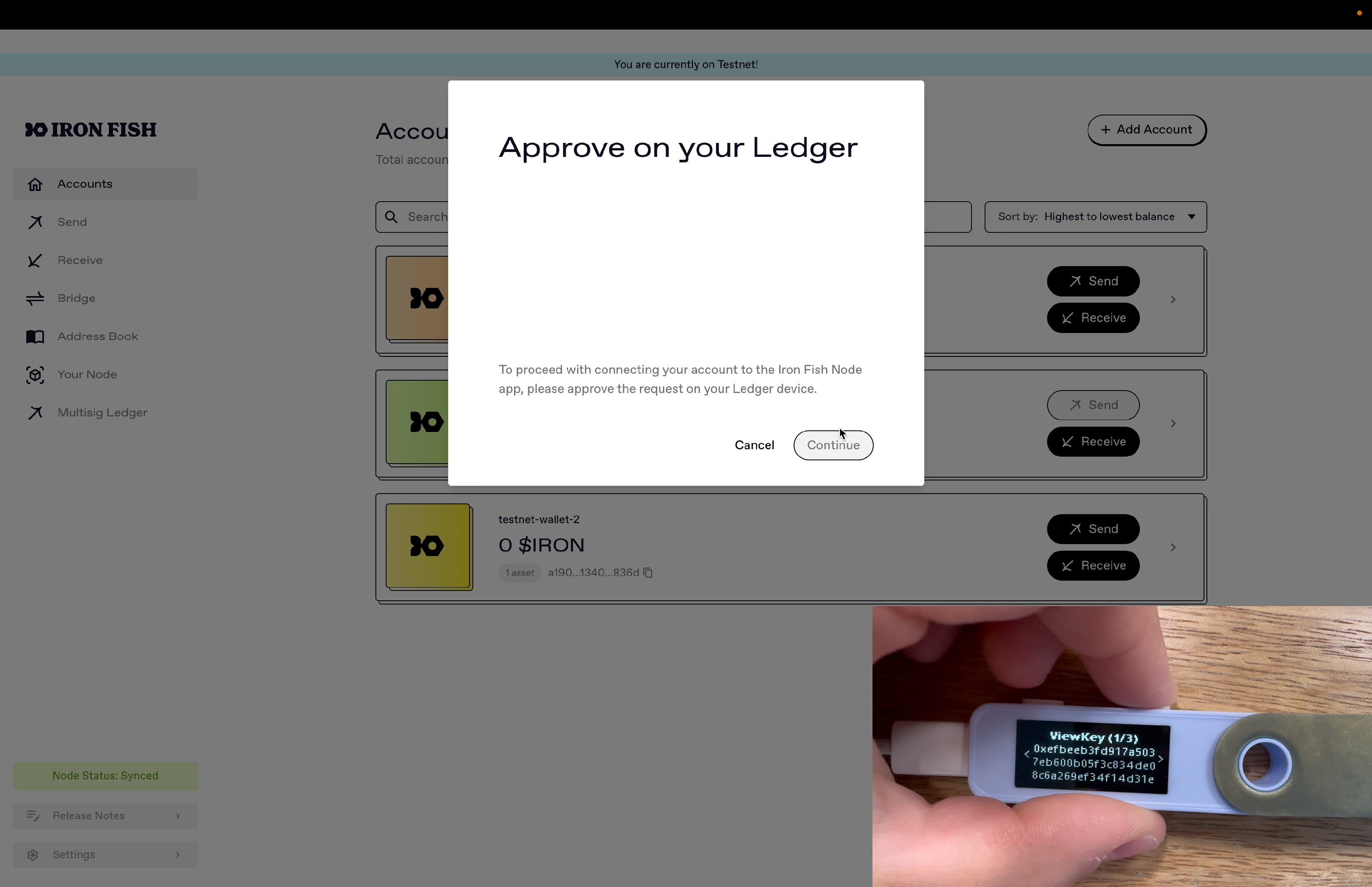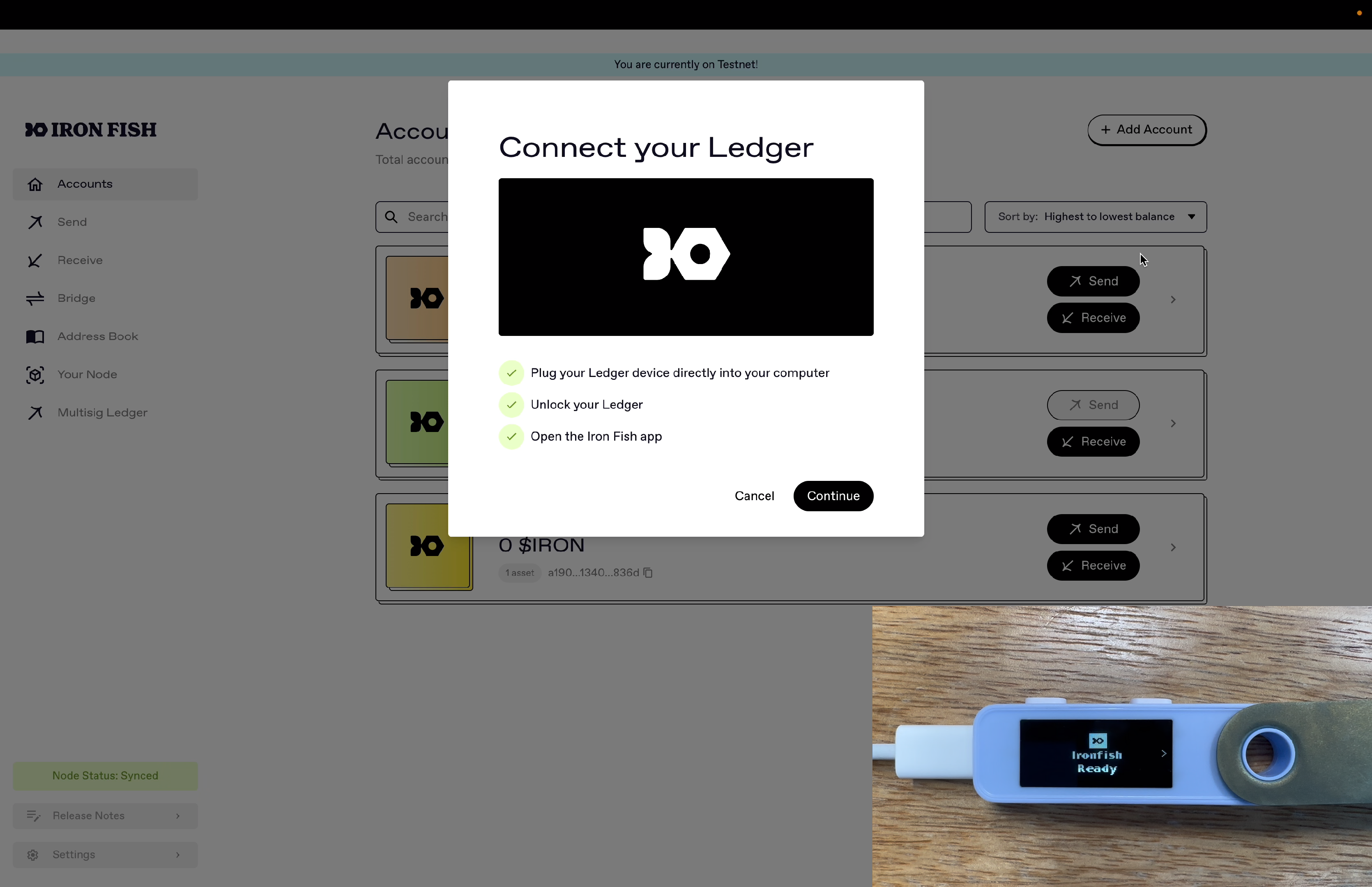 Add your Ledger Multi-Sig Account into the Iron Fish Node App